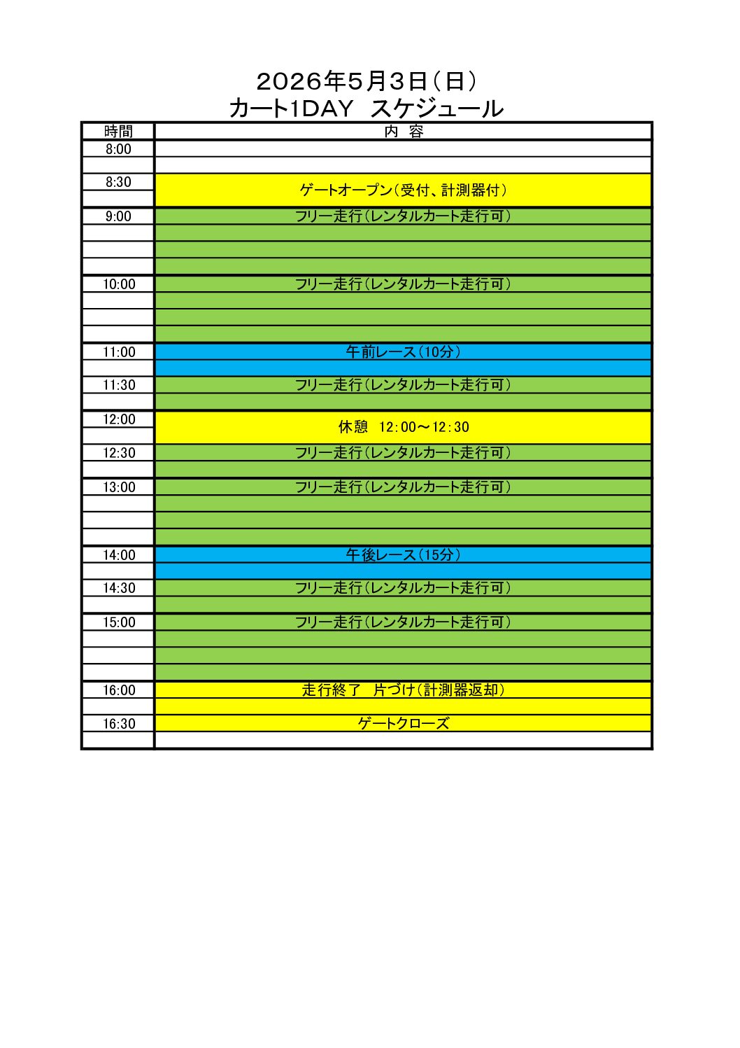 5月3日(日) 第1回 ONEDAYカート開催!!