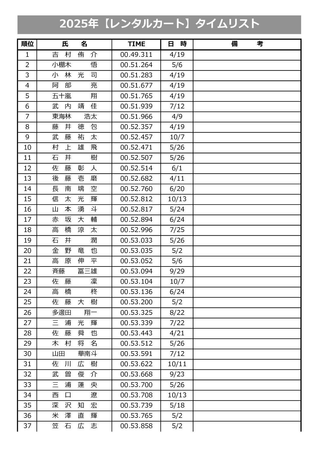 ※レンタルカートは走行料金に計測器貸出料金が含まれています。